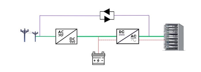 This is the most common architecture found in data centers. It utilizes solid-state power electronics (IGBTs) for conversion and chemical batteries for energy storage.